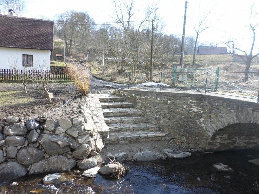 Od srpna 2018 probíhají opravy dalších úseků břehových zdí Merboltického potoka u čp 132, 133 a směrem dolů