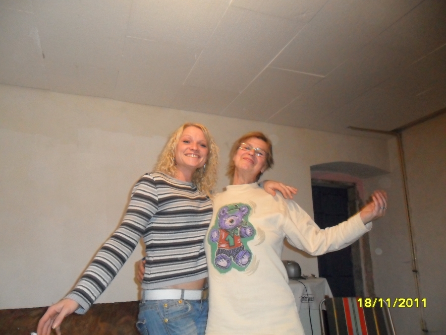 2011 Irena rekonstruuje svoji bývalou hospůdku na obytný prostor.V pátek 18.11.11 jsme tam poseděly u růžového Sklepmistra. Písničky, které máme rády, samozřejmě nechyběly, a nechyběl ani taneček. Pohoda, klídek, teploučko....