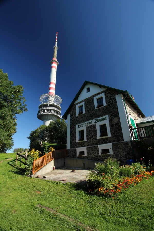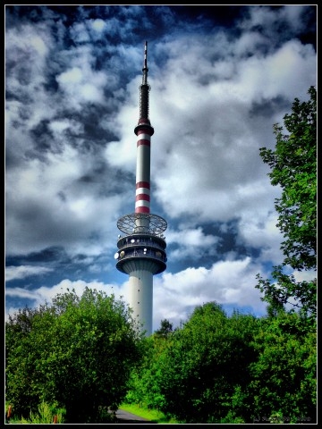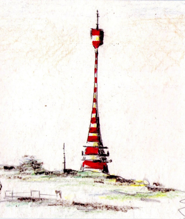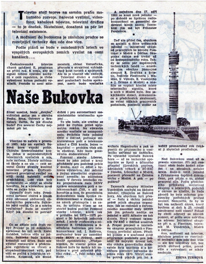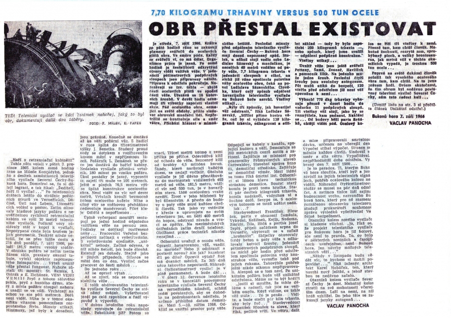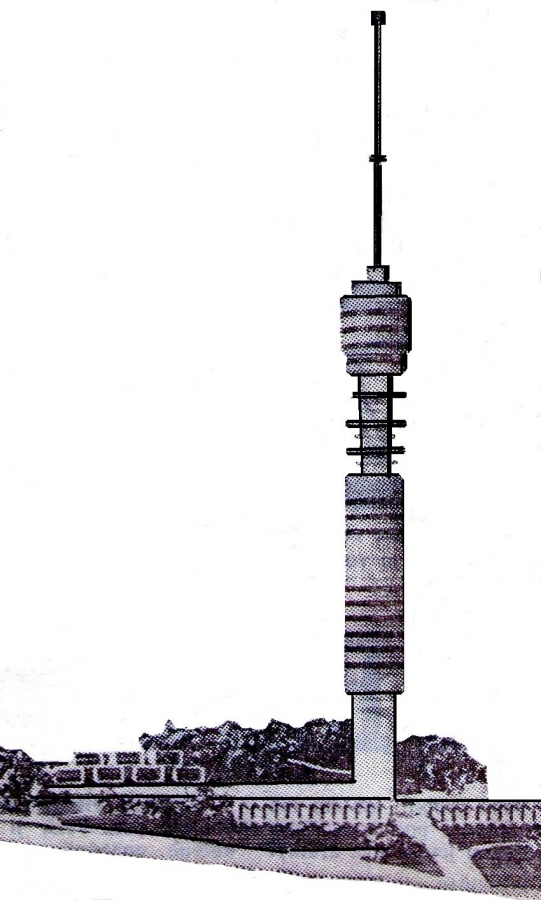 Původní stará věž převaděče na Bukové hoře byla kovová, štíhlá, byl v ní výtah, na poslední metry se stoupalo už jenom schodištěm. Na ochozu, v takové báni, byla zařízení pro přenos signálu.