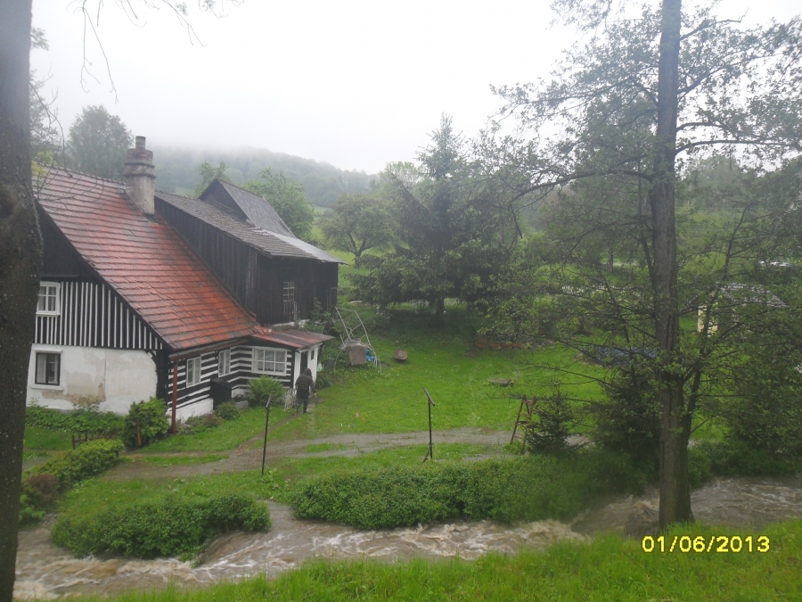 10.6.2013, dnes, v pondělí, je v Merbolticích zataženo, odpoledne i polojasno, ale neprší. Vše je po včerejším krátkém ale silném lijáku promočené. Na Labi je stále 3. povodňový stupeň, ale už se dá jet do Děčína, Labe klesá pomalu i ve Hřensku, ale tam se ještě jezdit nedá.