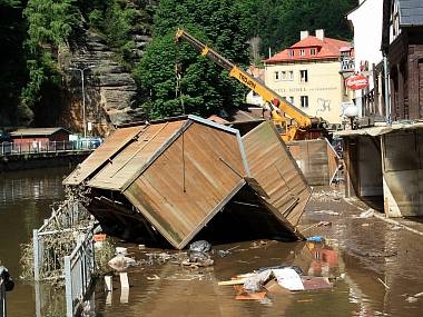 5.6.2013 Jižní a střední Čechy začínají počítat škody po záplavách a voda tu pomalu opadává, Nejhorší situace je v Mělníku, kde hrozí provalení protipovodňové hráze. Velká voda se teď valí na Ústí n.L, Děčín a Hřensko. Ohrožená místa na dolním Labi jsou evakuovaná a obyvatelé čekají na povodňovou vlnu, která přijde o něco později, než se původně předpokládalo, tedy až dnes večer. Hřensko je "mrtvou" obcí, bylo celé evakuováno, protože tudy se prožené veškerá voda z povodí Vltavy i Labe. V ÚL jsou uzavřeny mosty přes Labe a jedinou spojnicí mezi oběma břehy zajišťuje železniční most, lidé musí využívat vlak. V Děčíně byl uzavřen starý most, nový ještě funguje.