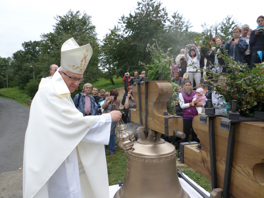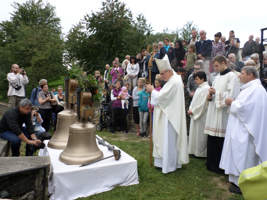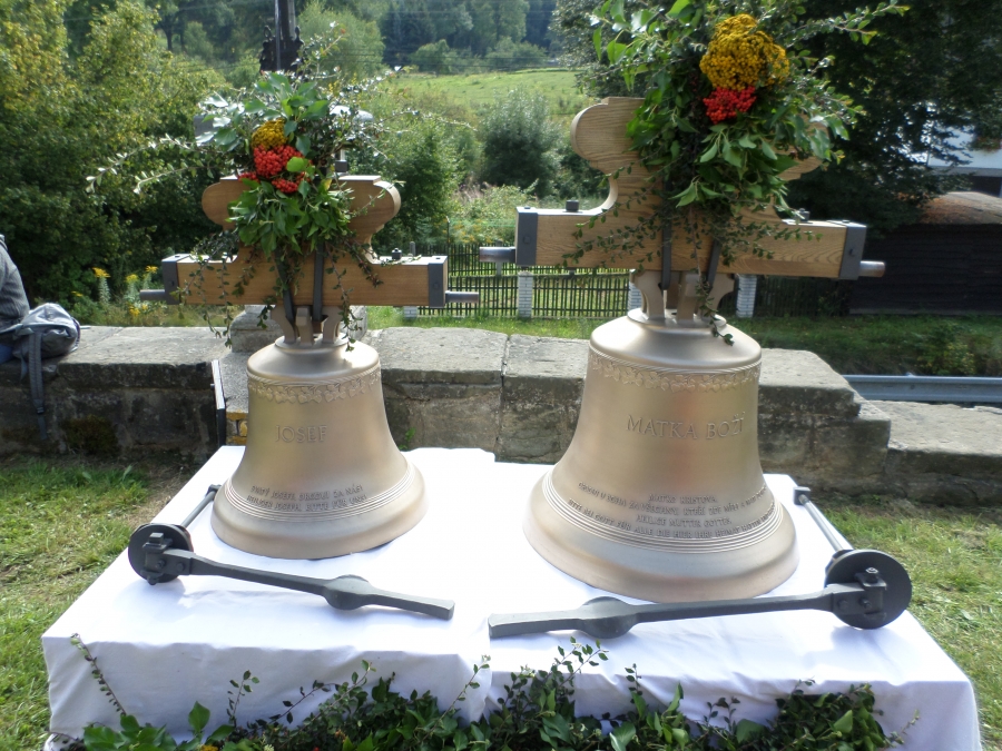 V sobotu 23,srpna 2014 byly vysvěceny nové merboltické zvony pro zvonici - Matka Boží a sv. Josef. Před deseti lety, v roce 2004, jsme světili první zvon - sv Kateřinu, která se konečně dočkala "bratříčků". Fotky ze svěcení sv. Kateřiny jsou na jiném místě těchto stránek.
