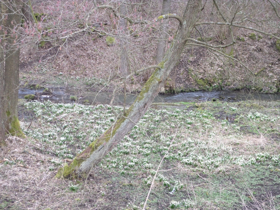 V údolí kolem Merboltického potoka se daří chráněné bleduli jarní. Hned po sněženkách a hlaváčku jarním rozkvétají bledule, které tvoří nádherné bílé koberce. Rostou u potoka, na zahradách i na cestách a dokonce i u silnice. Když rozkvetou, je tu jaro.